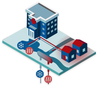 Met aquathermie maak je gebruik van warmte en/of koude uit water: oppervlaktewater (TEO), afvalwater (TEA) of drinkwater (TED). Deze energie wordt vaak via een warmtenet naar gebouwen gebracht.