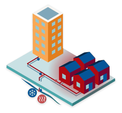 - Individuele gebouwen of kleinschalige collectieve systemen